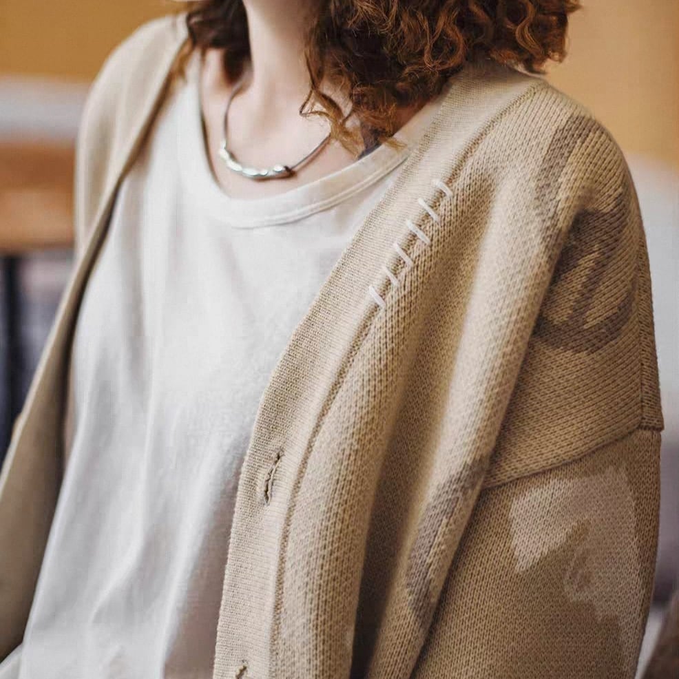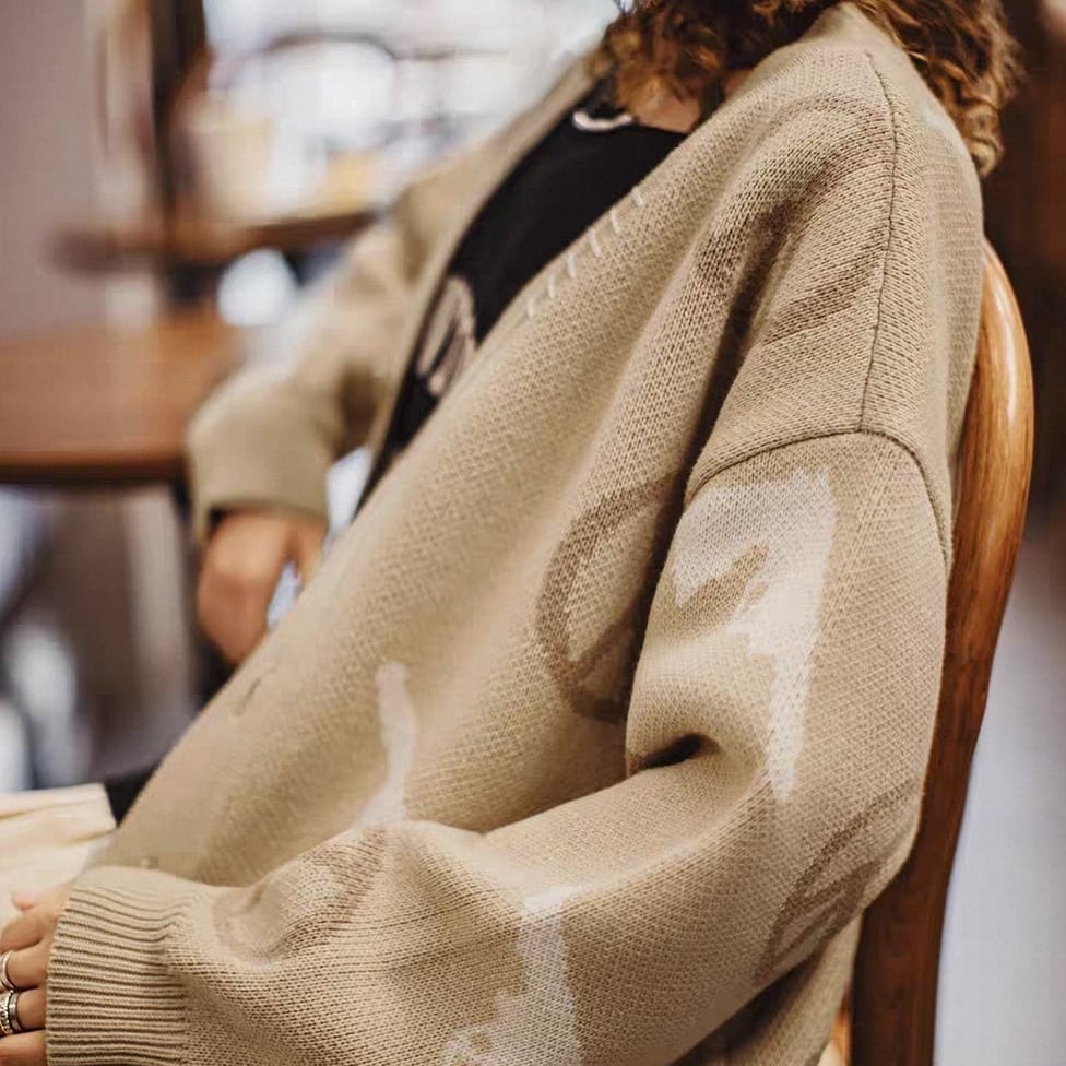 奥行きのある編み模様と落ち感のあるフォルムが、着るだけでニュアンスをつくるニットカーディガン。