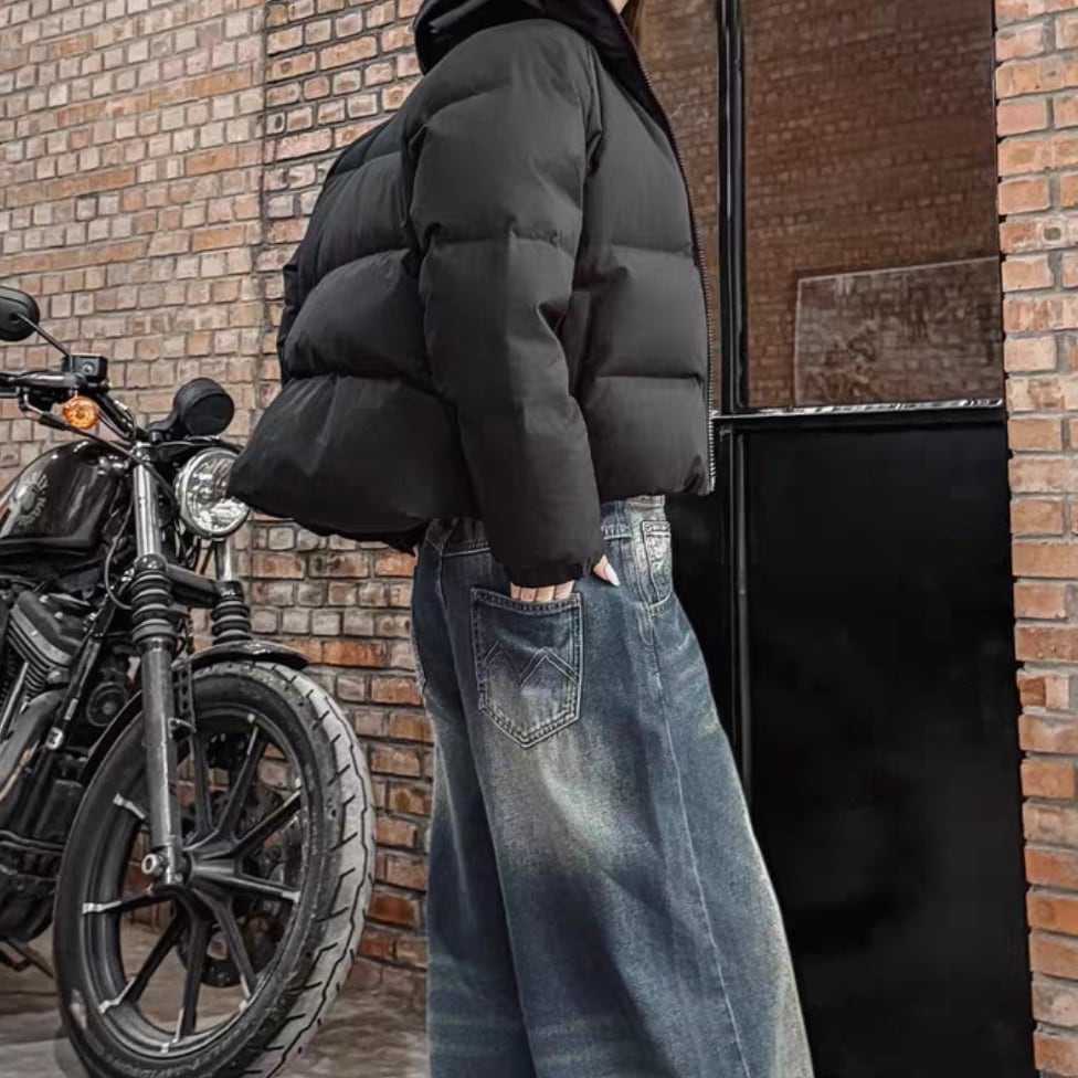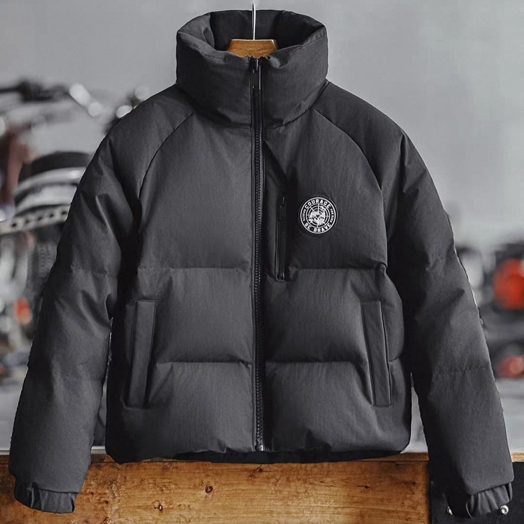 防寒性の高いハイカラーとショートシルエットが、バランスよく都会的に仕上がったダウンアウター。