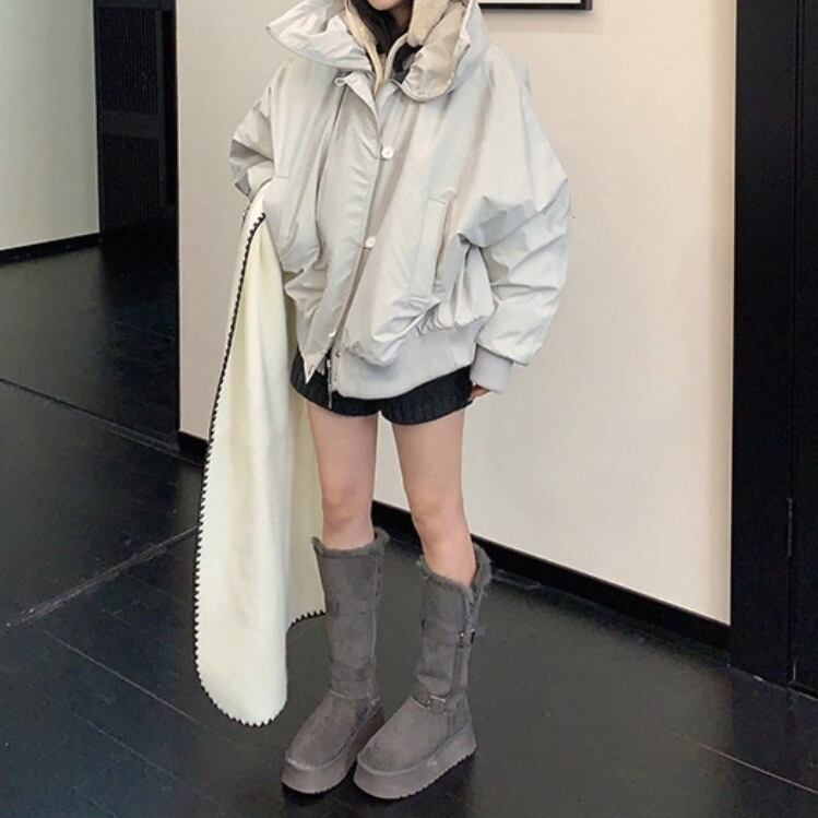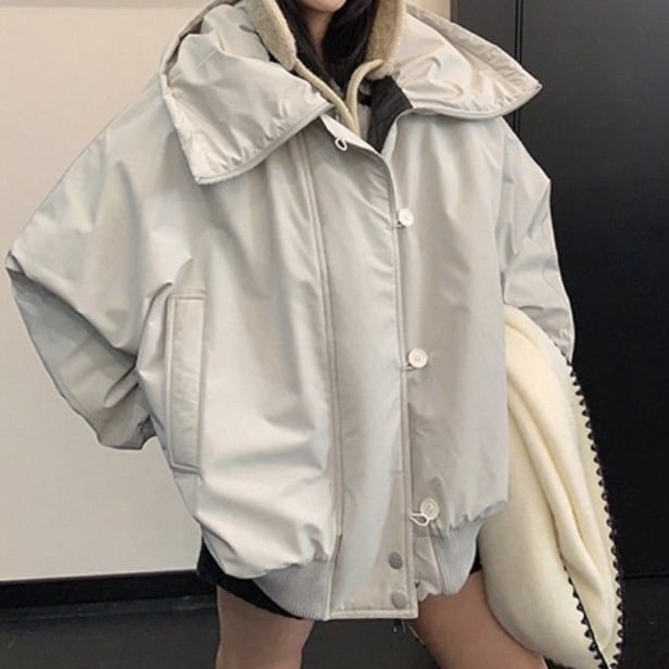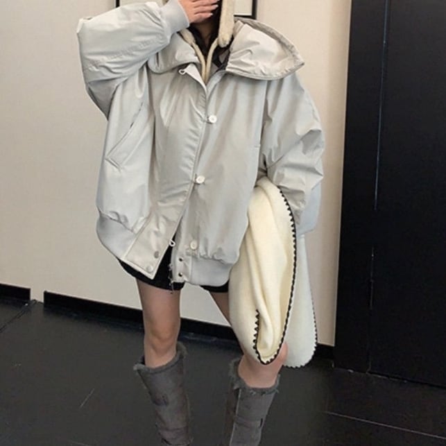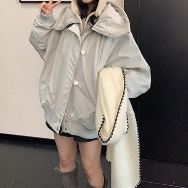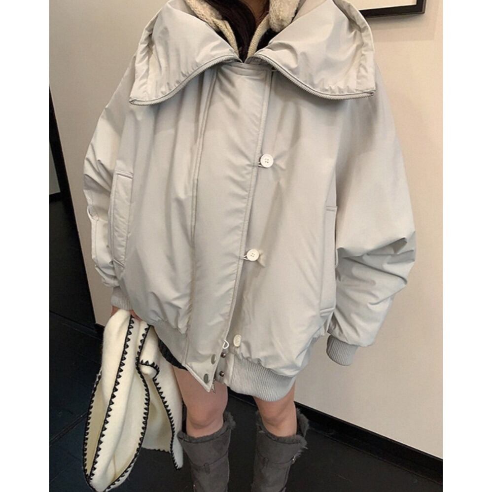ゆったりとしたフィット感で、重ね着もしやすいコート。