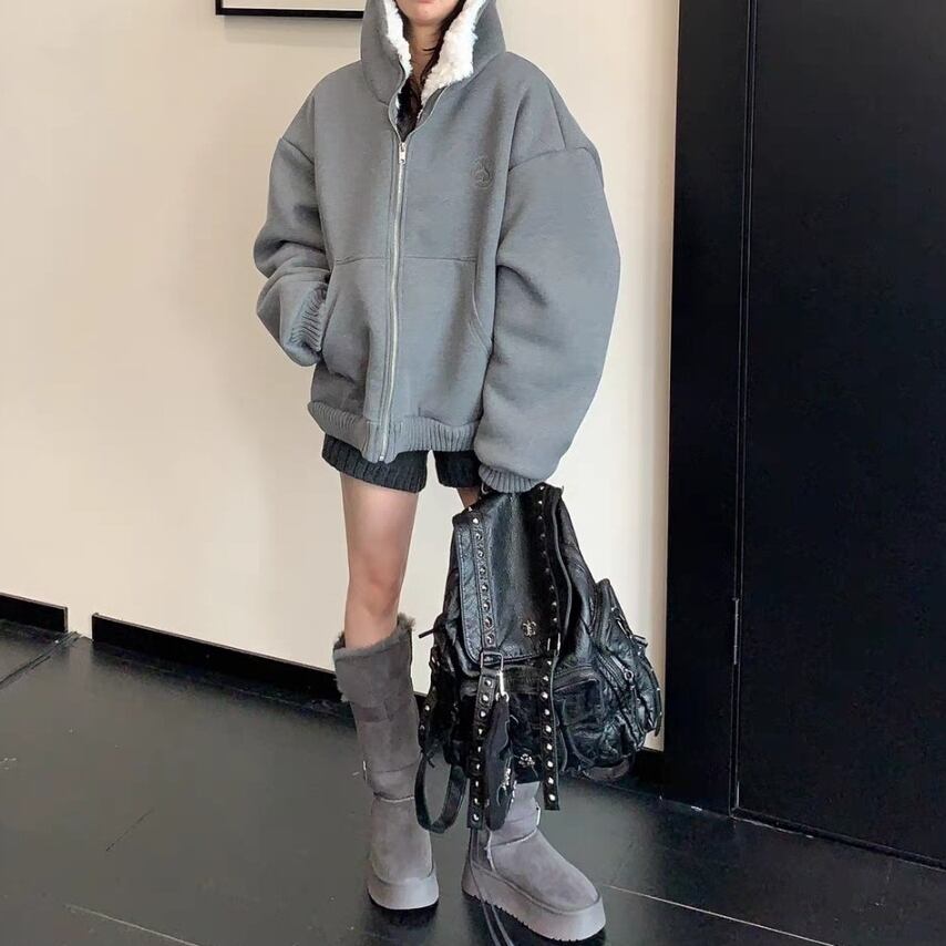 フリース裏地×厚手素材で、暖かさと存在感を両立。