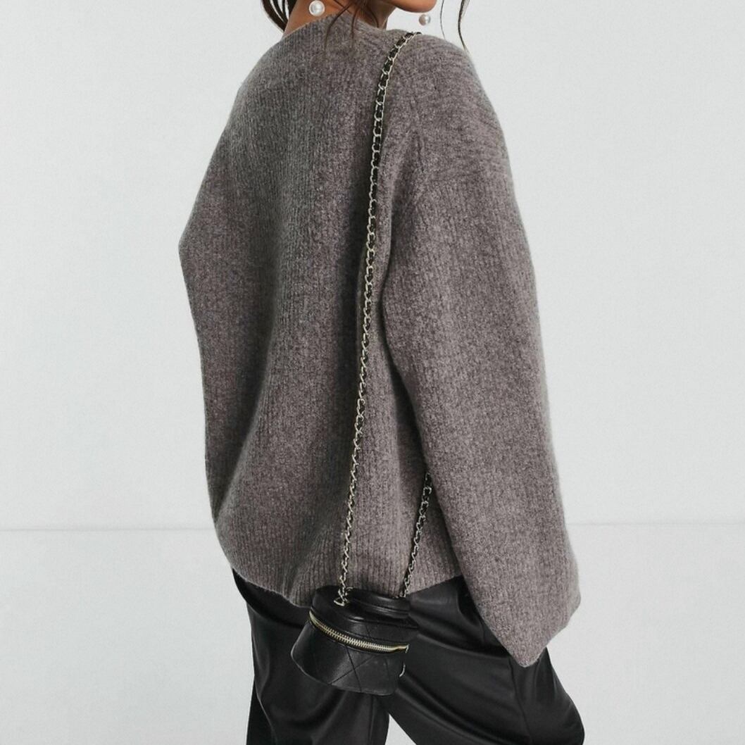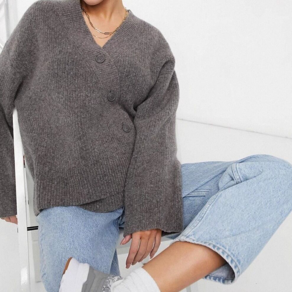 北欧風ミニマリストデザインが際立つ、非対称Vネックカーディガン。