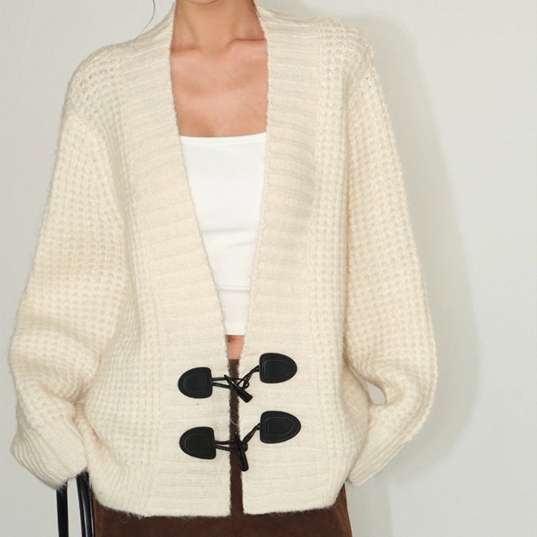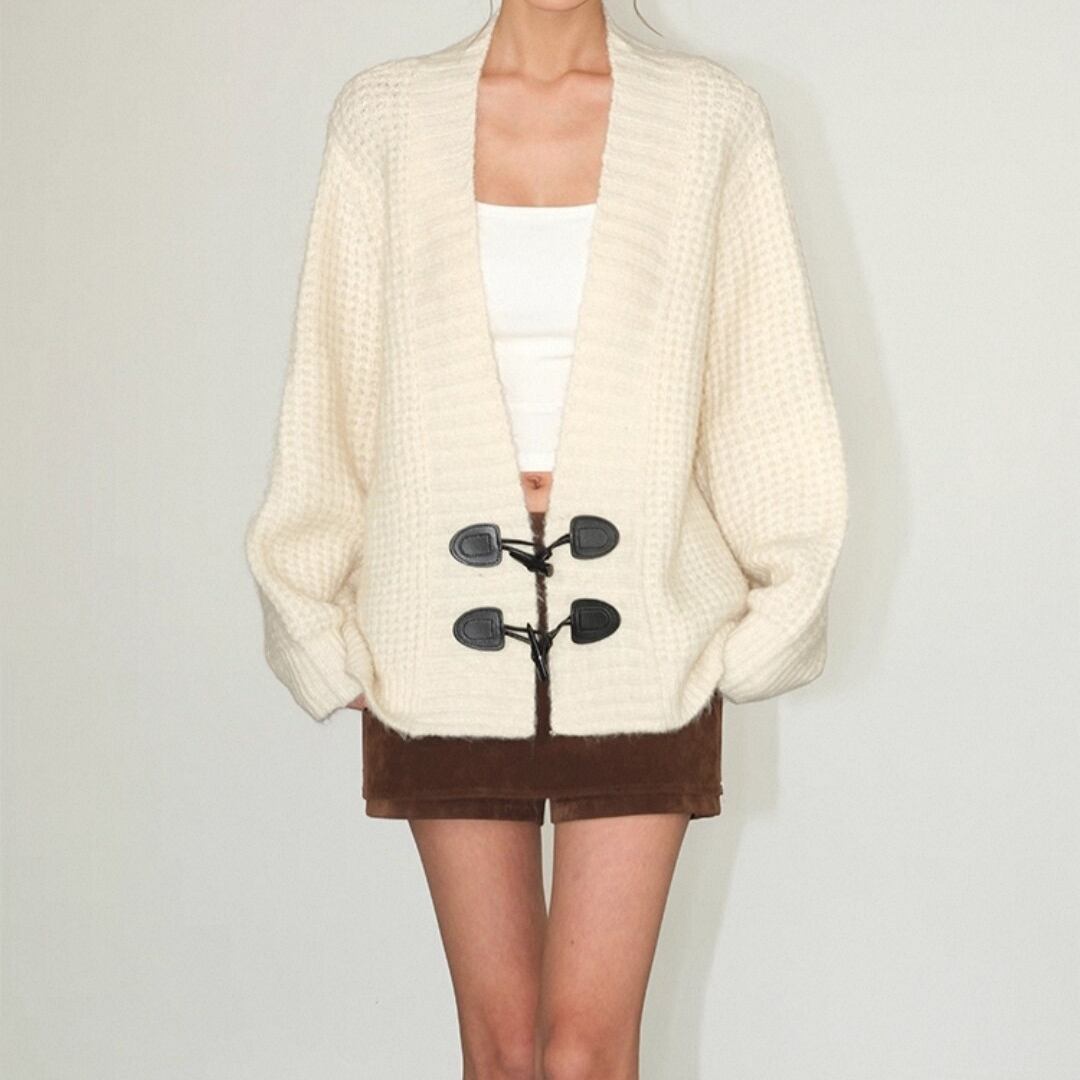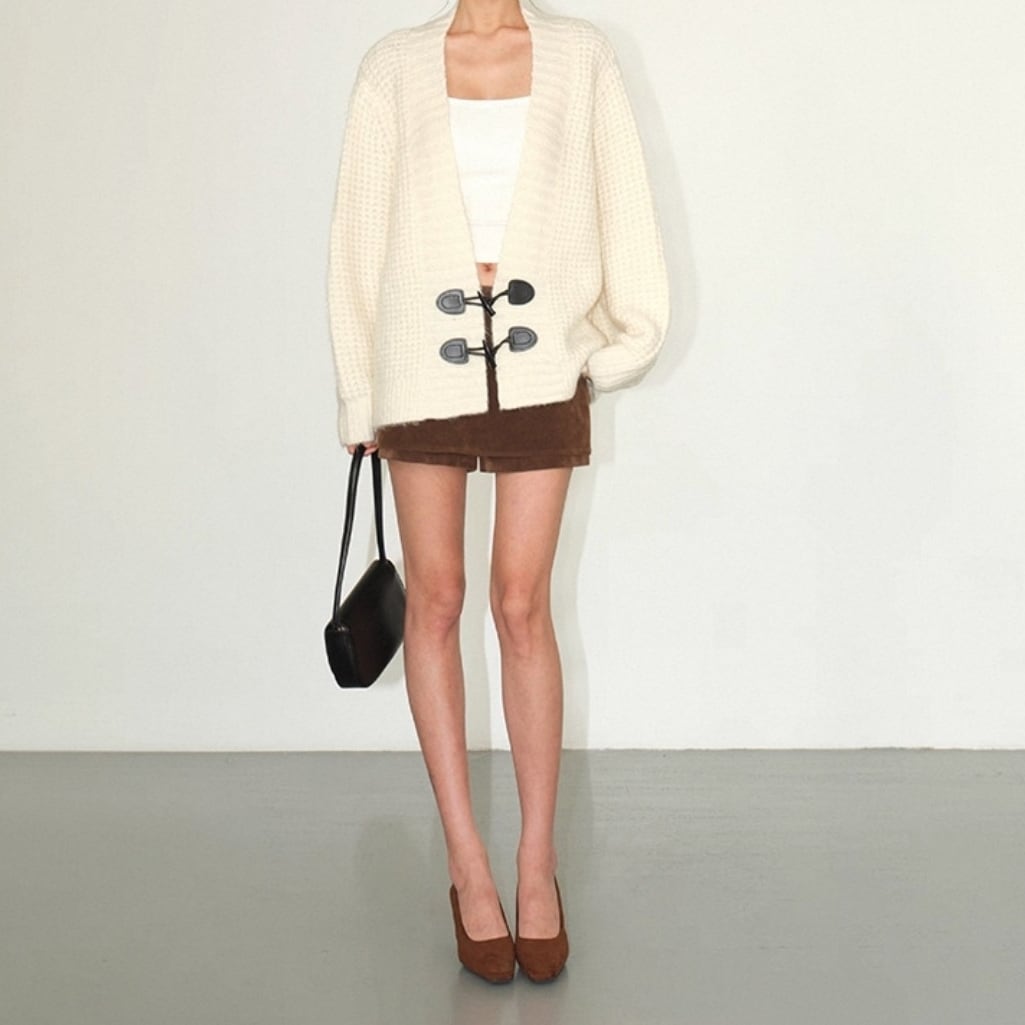 ナチュラルでリラックス感のある、レイジースタイルのダッフルニットカーディガン。 ゆったりとしたシルエットで、柔らかく心地よい着用感。 セーターコートとしても使える程よい厚みが魅力。 日常に溶け込む、大人カジュアルな一着です。 ◇カラー オフホワイト グレー ◇素材 ウール アクリル ◇サイズ:S,M,L S 肩幅:44cm胸囲:122cm着丈:61cm 袖丈:56cm M 肩幅:45cm胸囲:126cm着丈:62.5cm 袖丈:57cm L 肩幅:46cm胸囲:130cm着丈:64cm 袖丈:58cm ◇モデル 身長173cm:Sサイズ着用