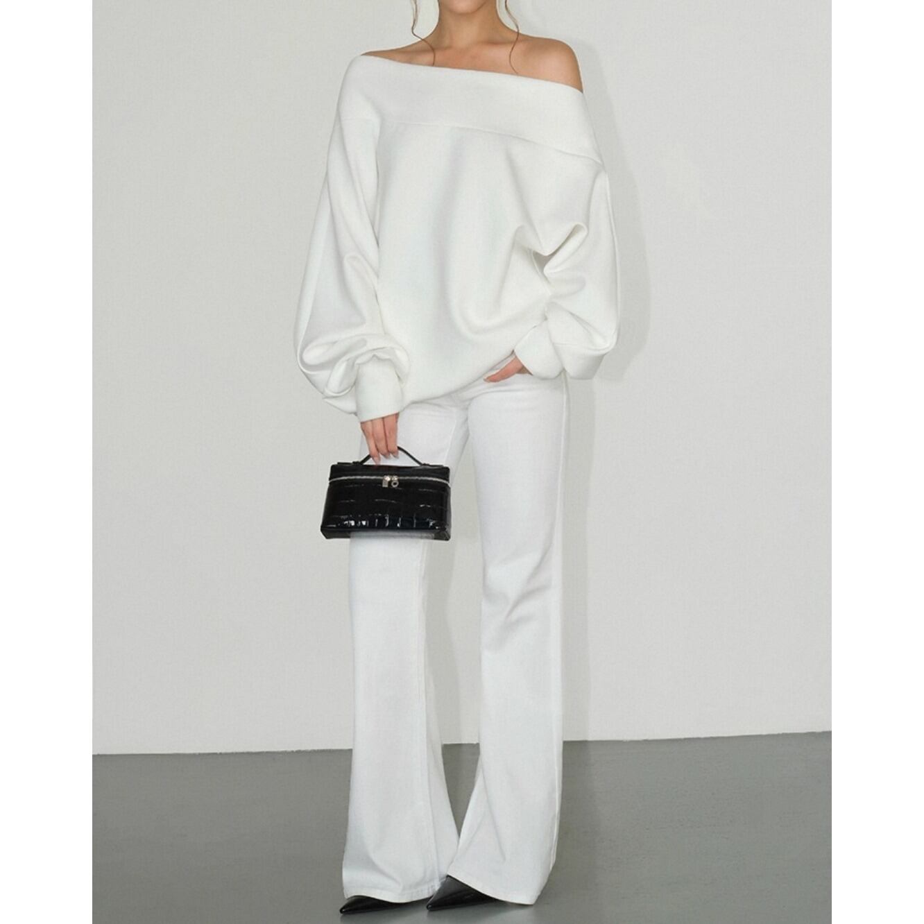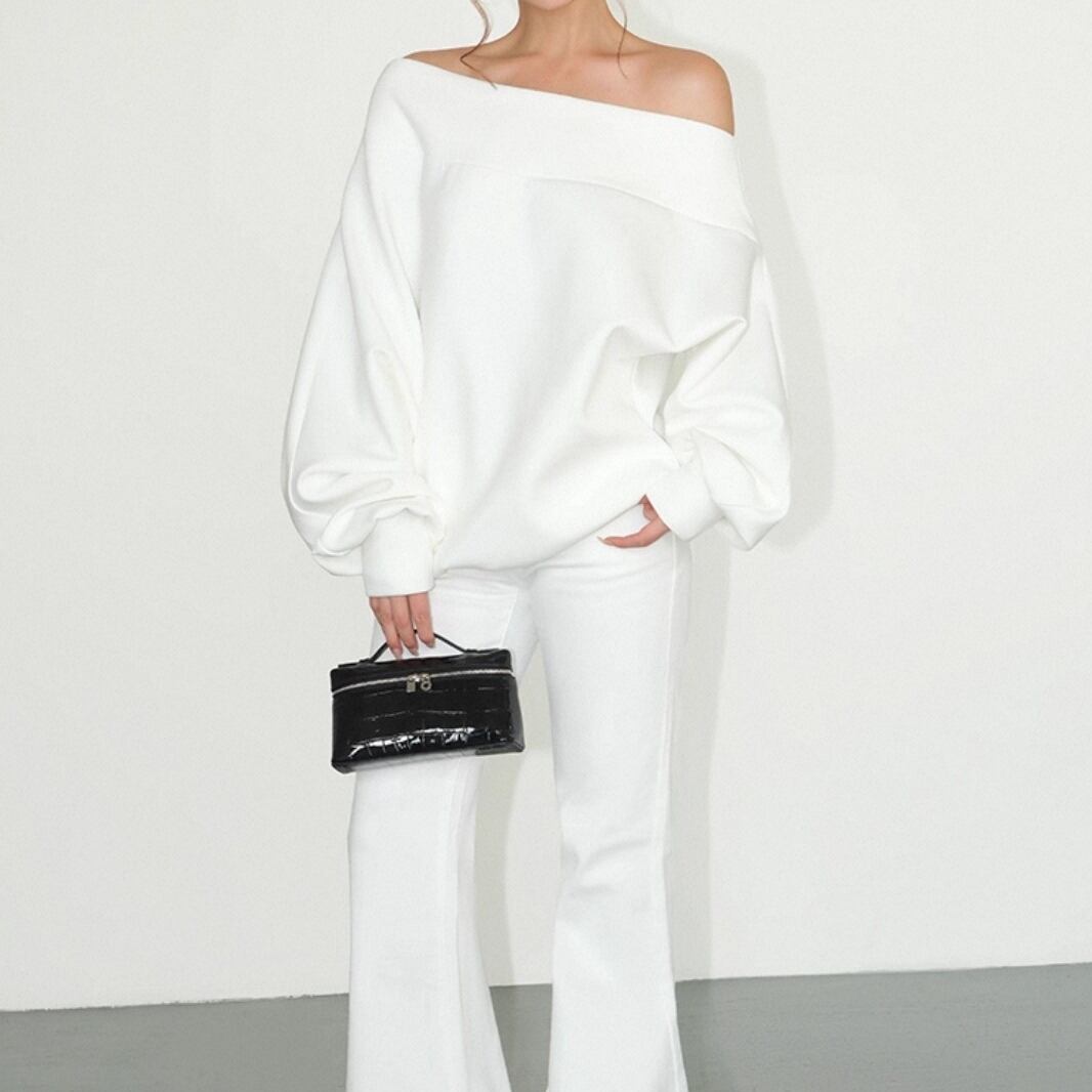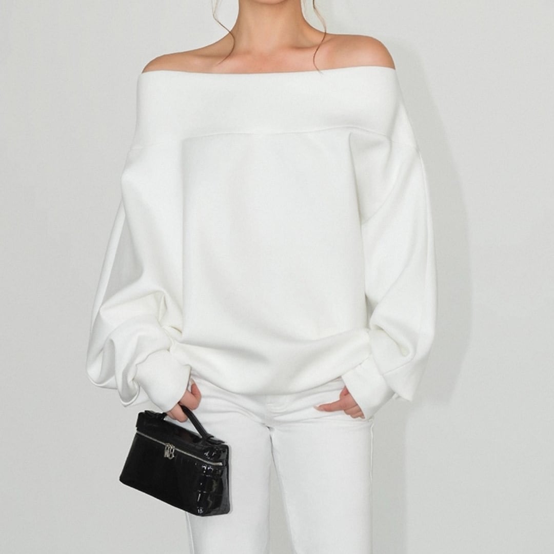 ゆったりとしたオフショルダーデザインで、抜け感のある着こなしに。 長袖仕様で、季節の変わり目にも活躍。 カジュアルながら女性らしさを引き立てる一着。 デイリーコーデに取り入れやすいトップスです。 ◇カラー ホワイト ブルー ◇素材 ポリエステル コットン ◇サイズ:S,M,L S 着丈:60cm 袖丈:左53cm右71cm M 着丈:61.5cm 袖丈:左53.5cm右72.3cm L 着丈:63cm 袖丈:左54cm右73.6cm ◇モデル 身長163cm:Sサイズ着用