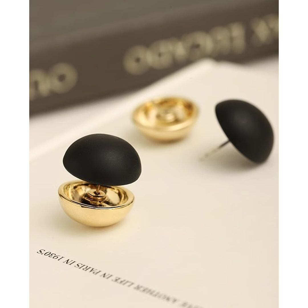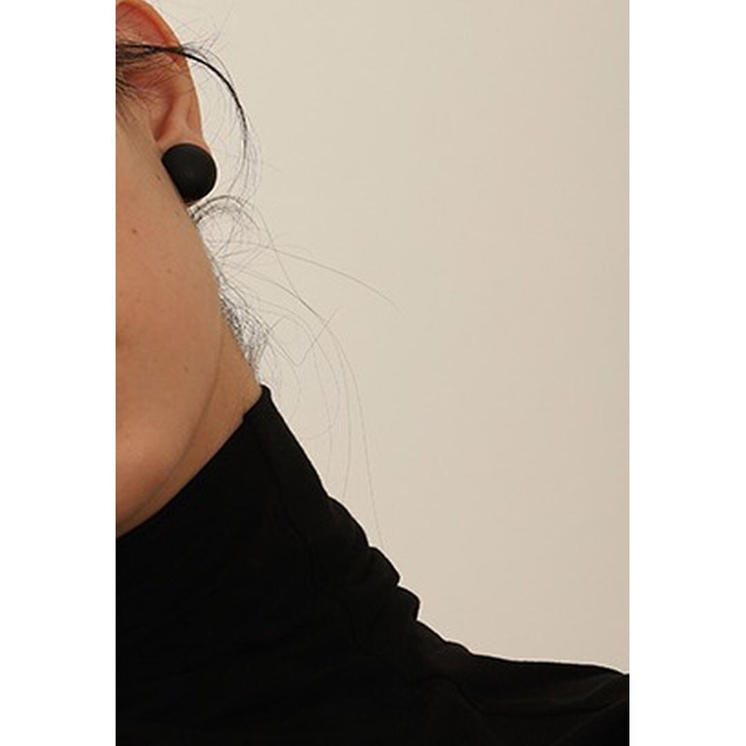 コロンと丸い形がレトロなブラックラウンドピアス。