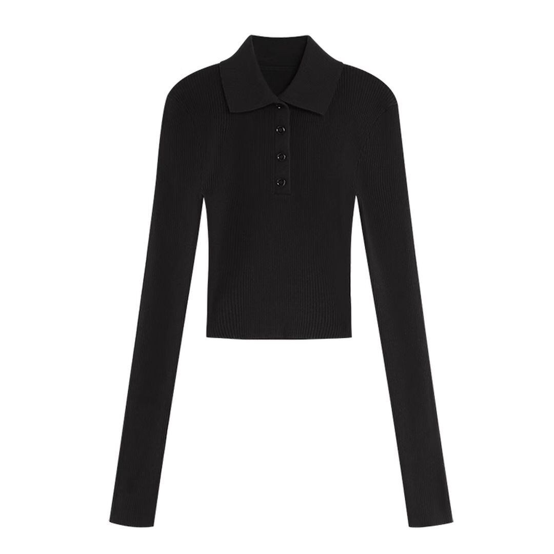 ベーシックカラーとシンプルなデザインのポロネックセーター。