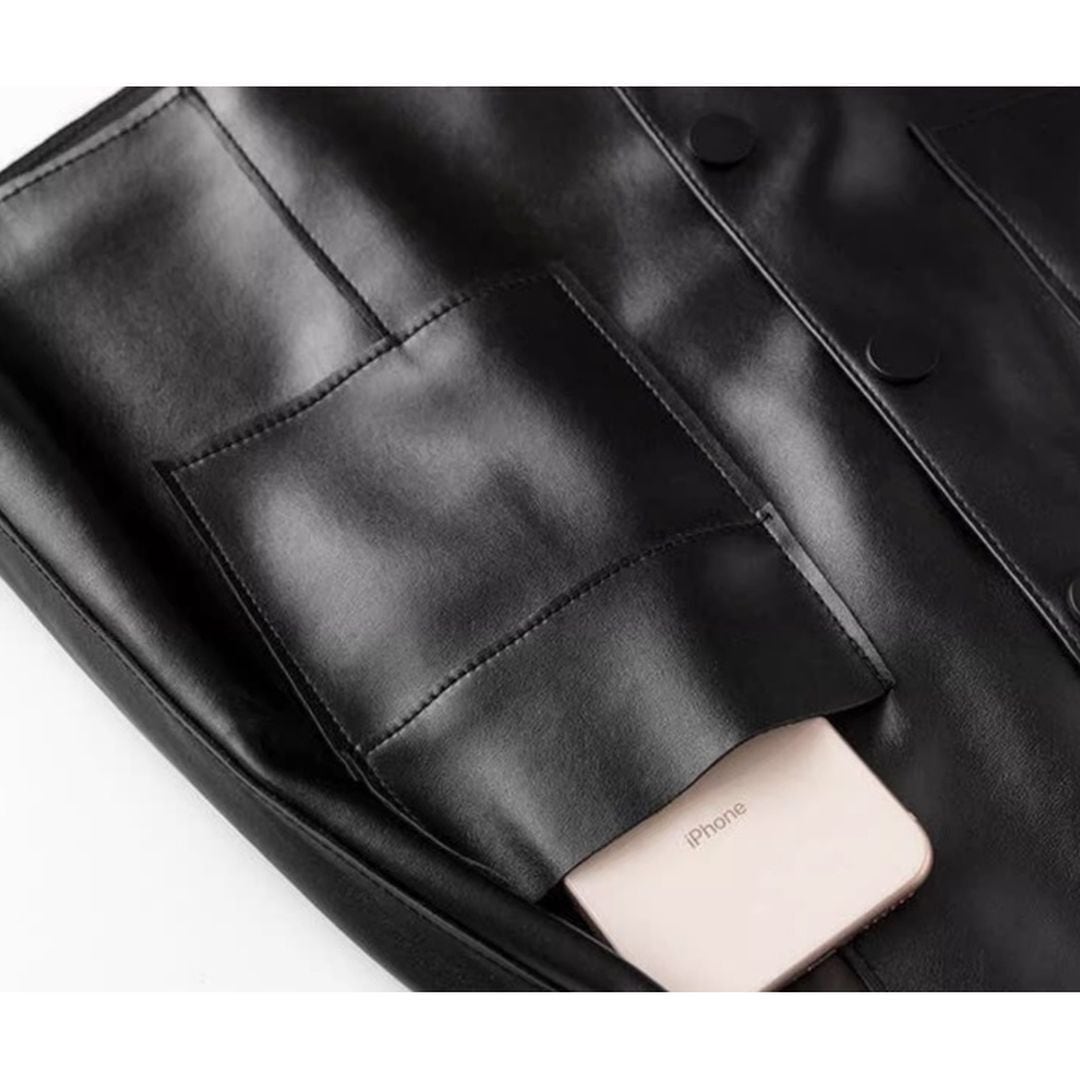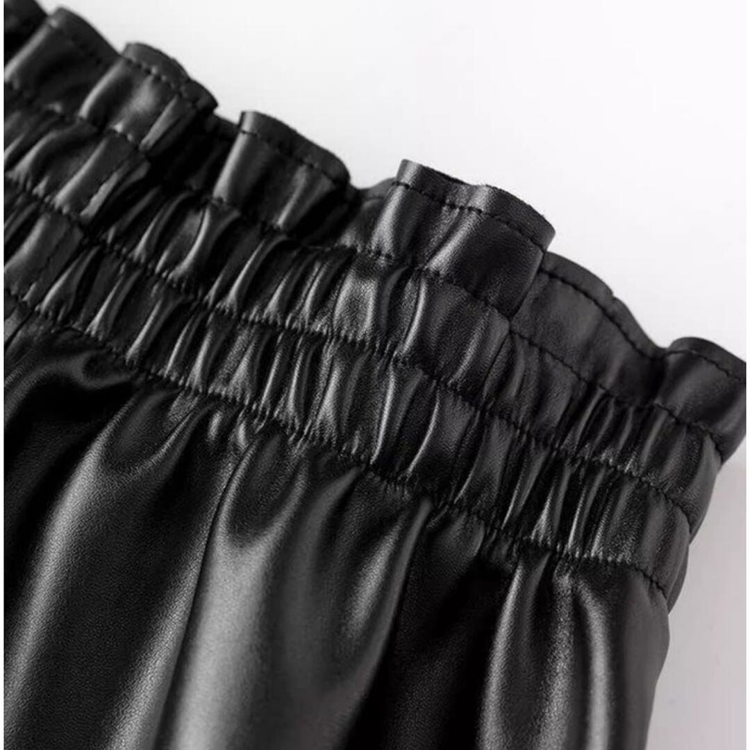 PU素材を使用したAラインのショートスカート。