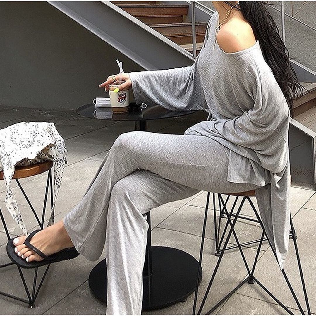 Off-Shoulder Long Sleeve Tops & Pants Set Up 124280