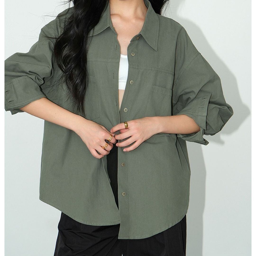 シンプルなデザインとゆったりとしたフォルムが魅力のシャツ。