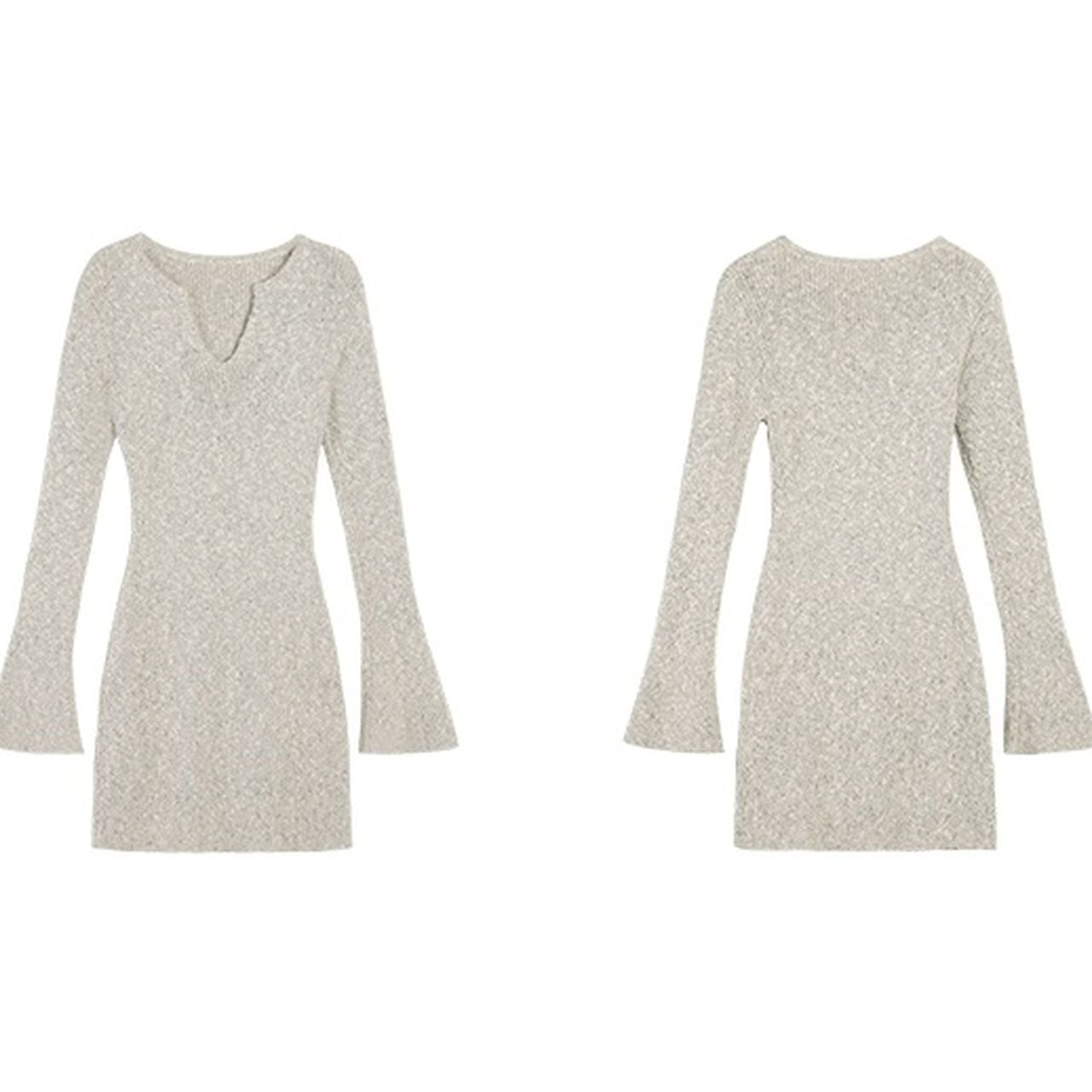 長袖の季節に着たくなる長袖ニットミニワンピース。