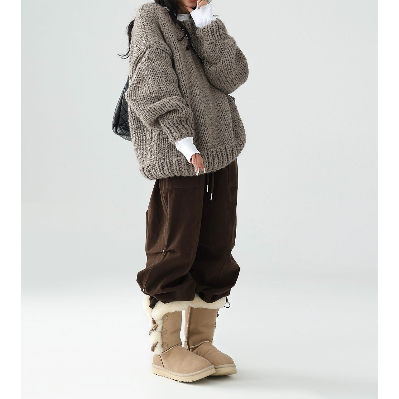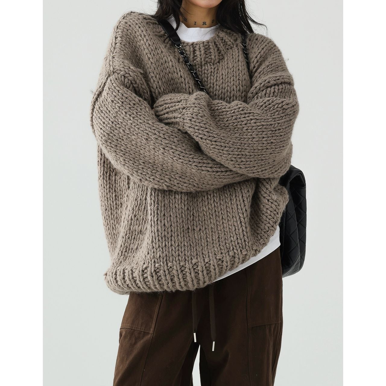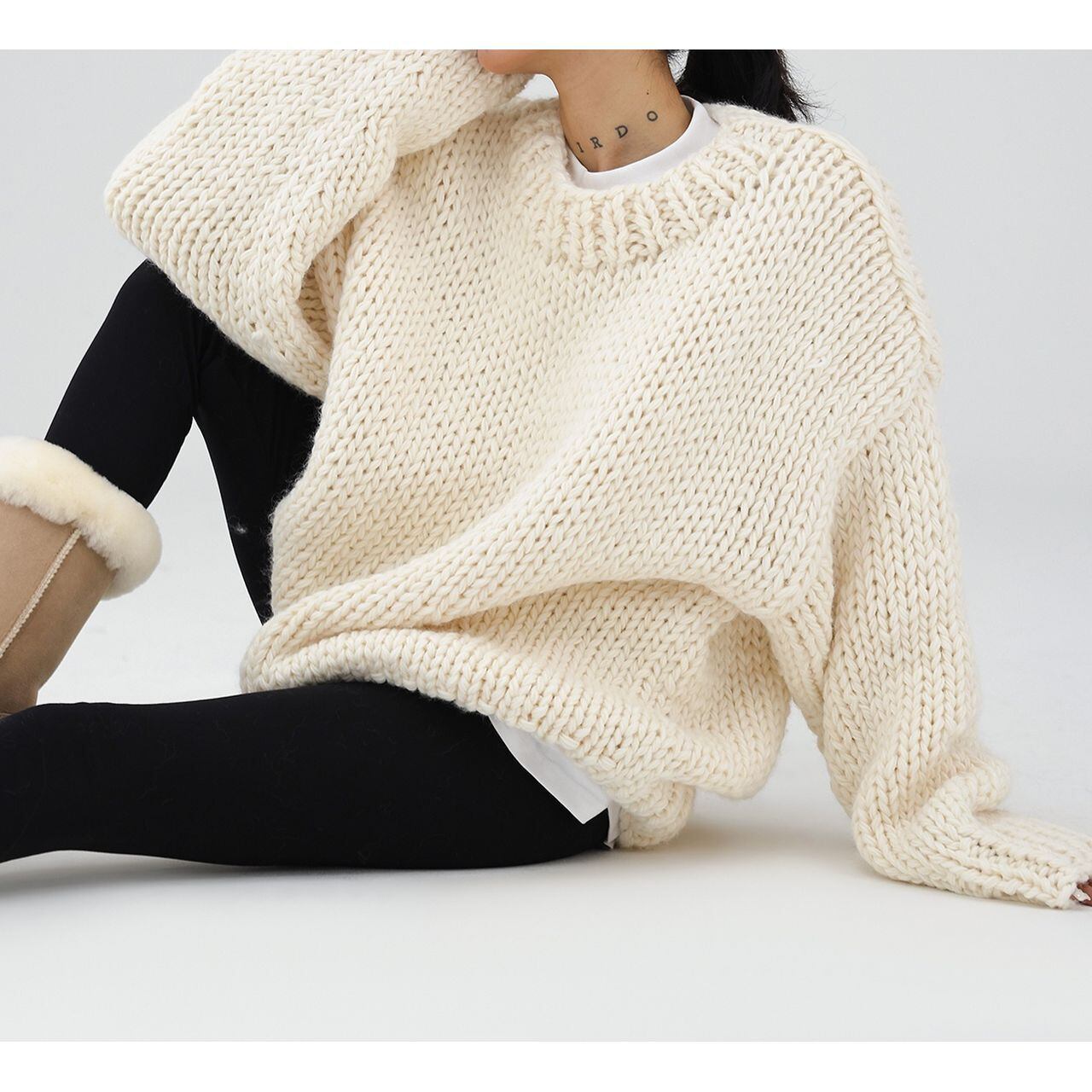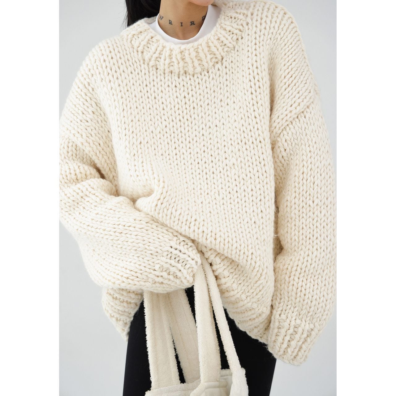 心地よい暖かさを実感できるウールニットラウンドネックプルオーバーセーター。