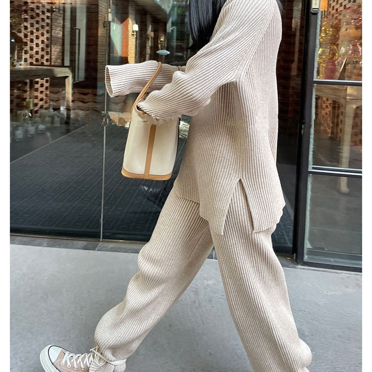 Simple knit sweater 2-piece set 124816