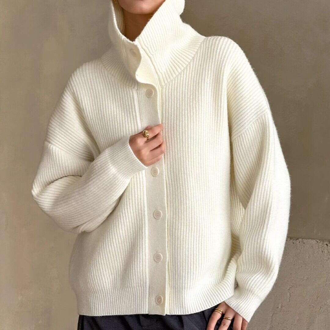 シンプルでありながら、上品さを引き立てるタートルネックカーディガン。