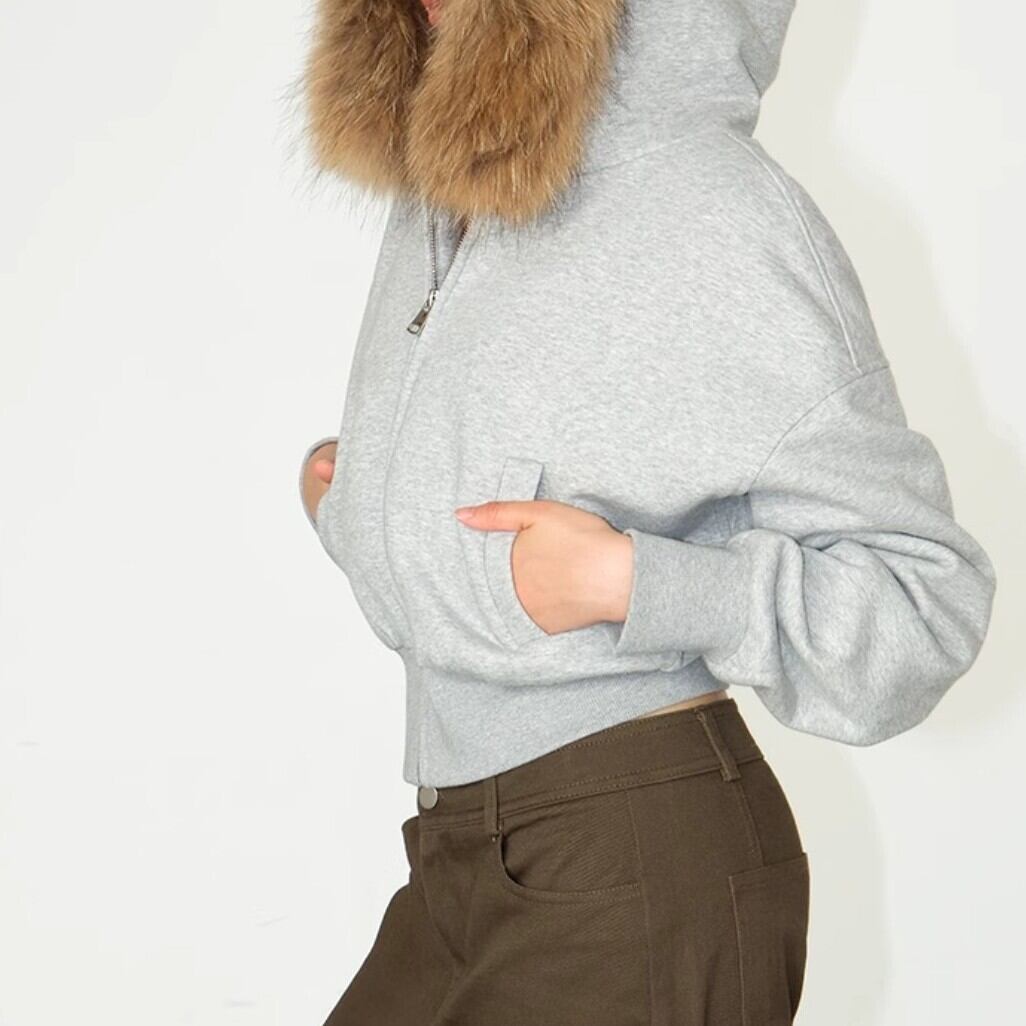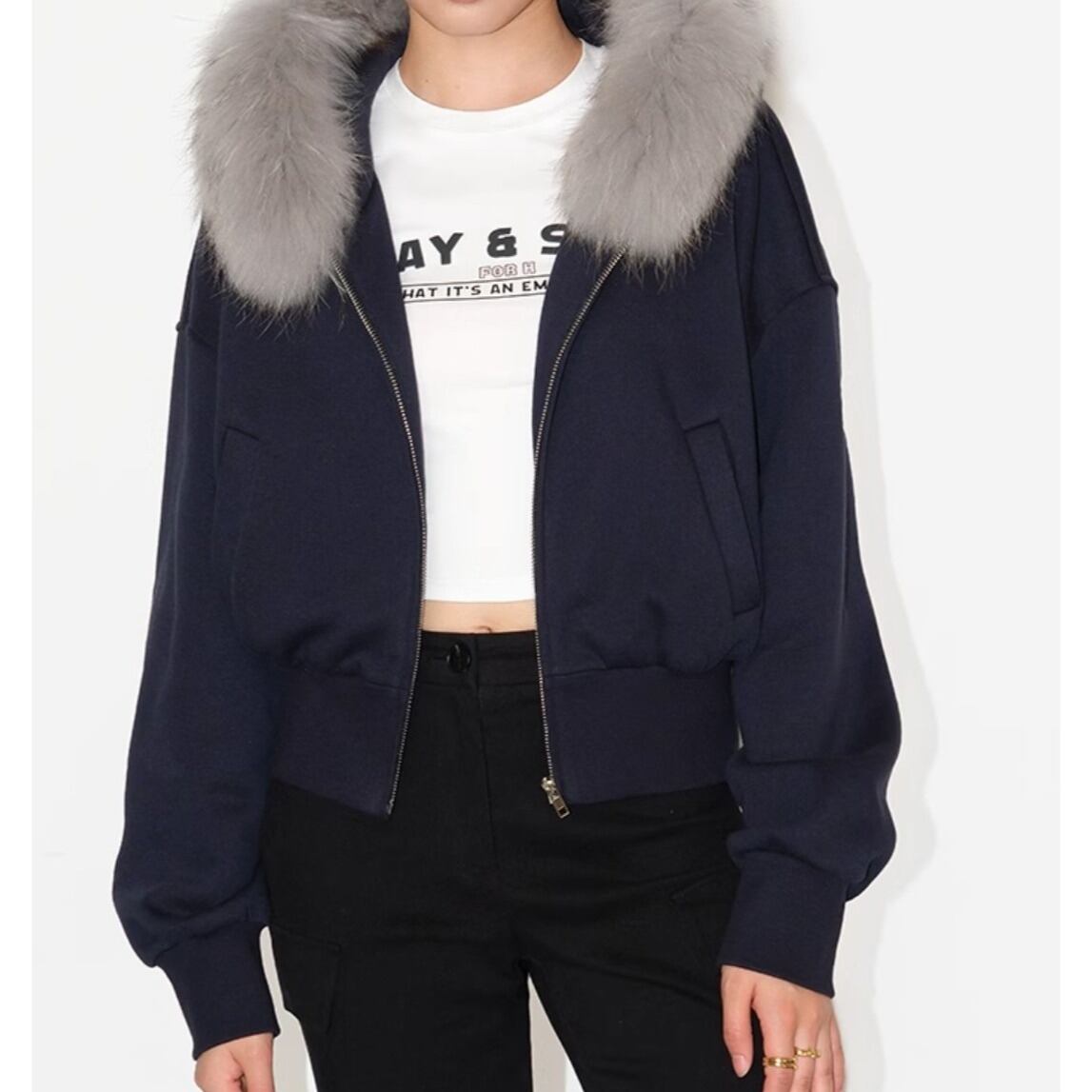ゆるっと感が可愛いオーバーサイズのフード付きジャケット。