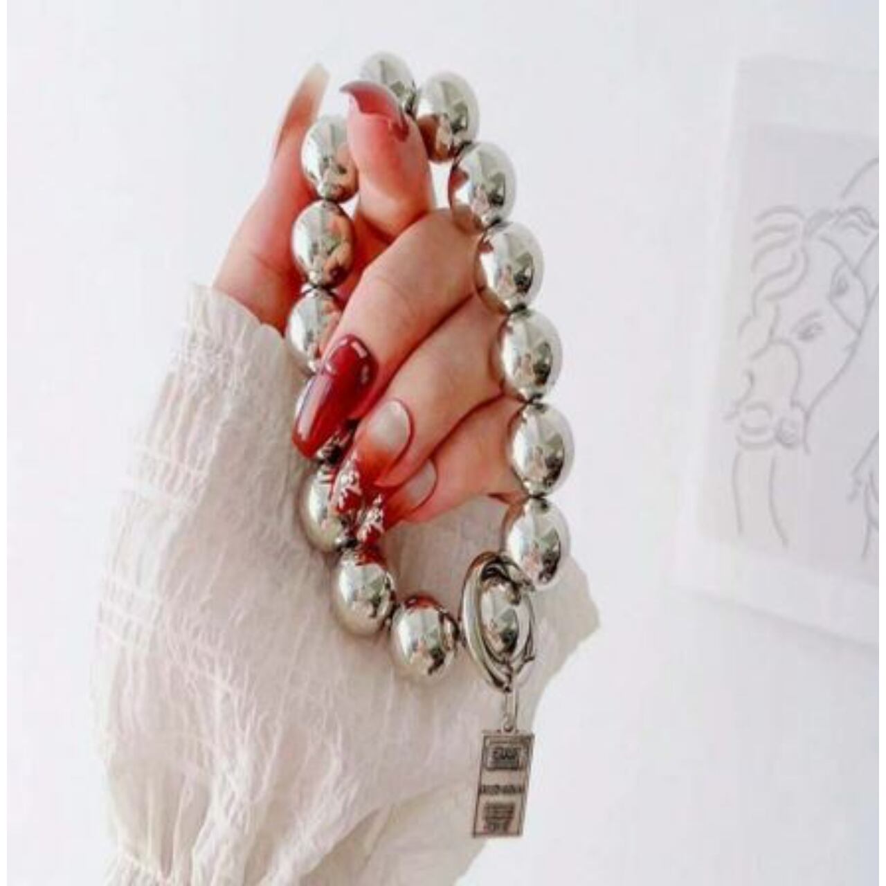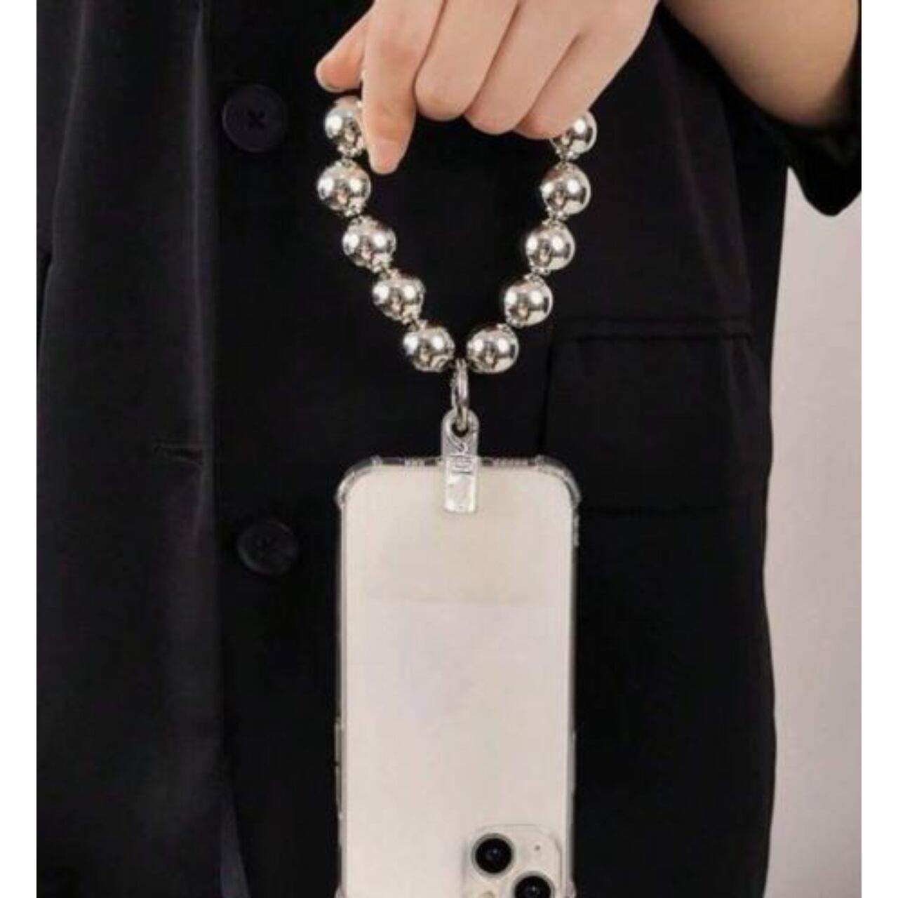 シルバーカラーがオシャレなチャーム付きスマホブレスレット。